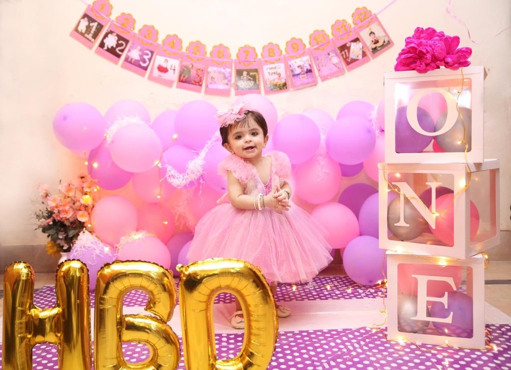 – A large pink bow at the back adorned with small pearl-like embellishments.